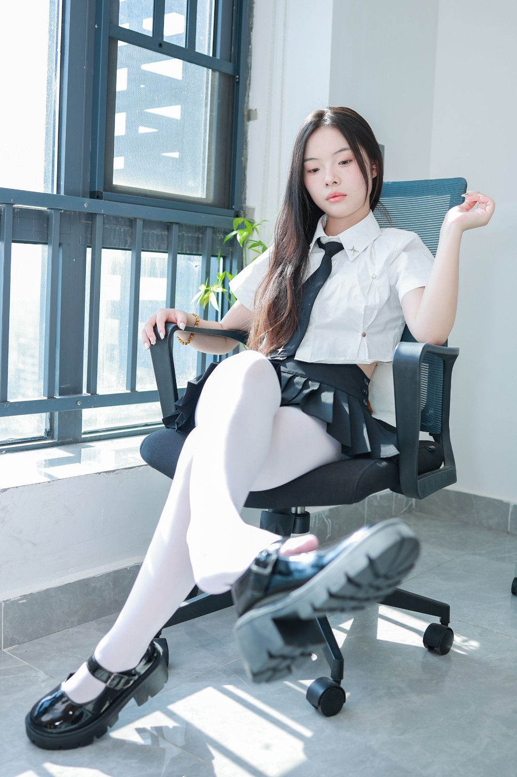 ❀服装:白色小衬衫 厚白丝袜 黑色小皮鞋
