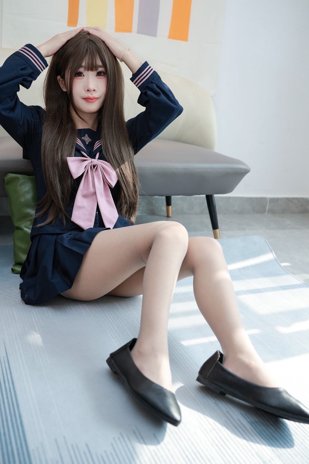 ❀服装:jk制服学院风 薄肉丝 黑色小皮鞋