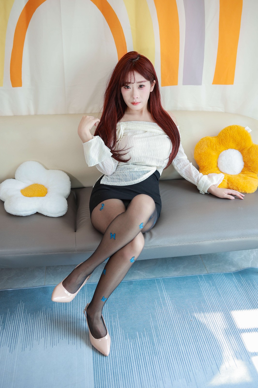 ❀服装:白色上衣 黑色包臀裙 薄黑丝 粉色高跟鞋