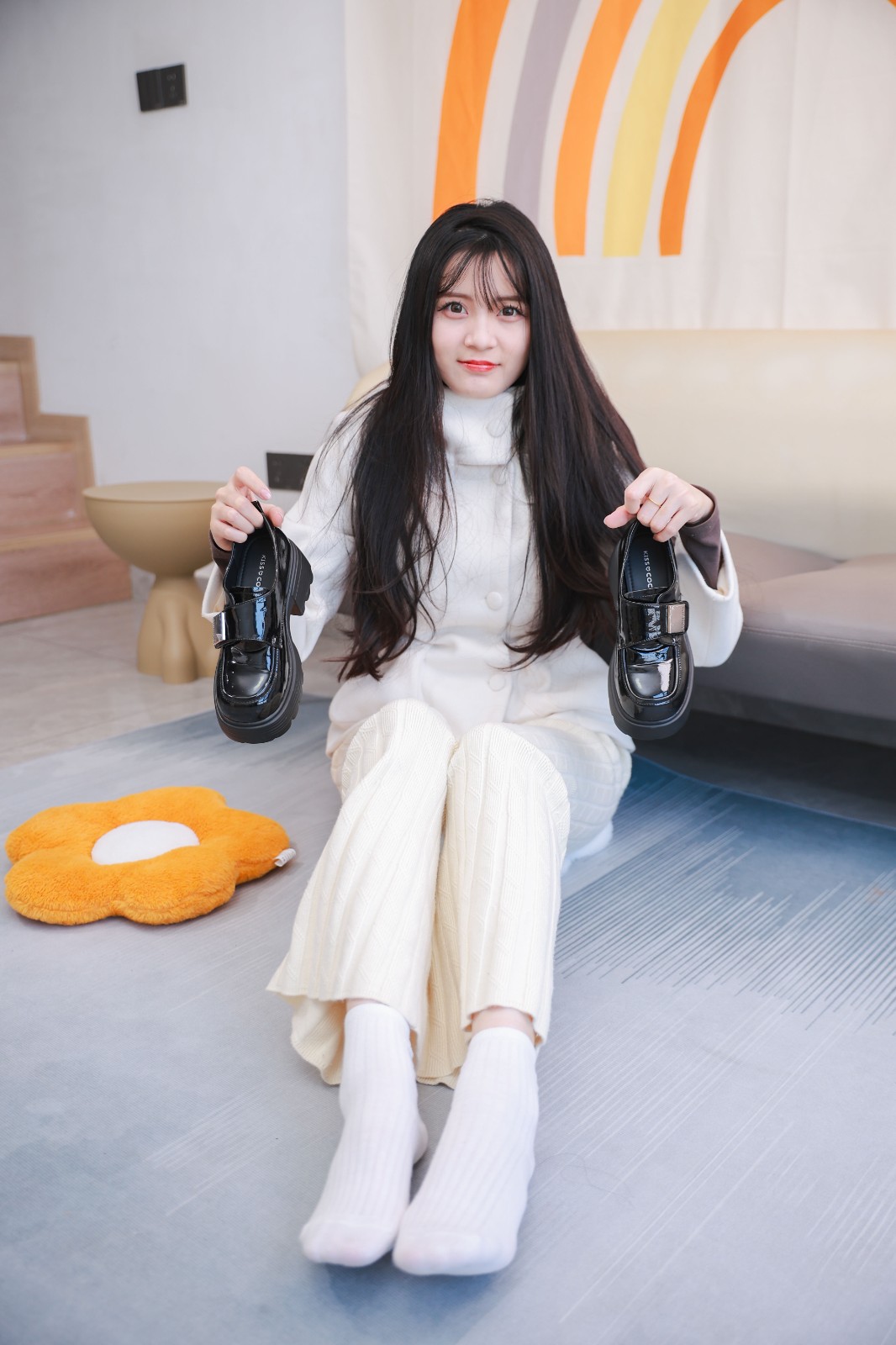 ❀服装:米色大衣 白色长裤 白棉袜 黑色小皮鞋