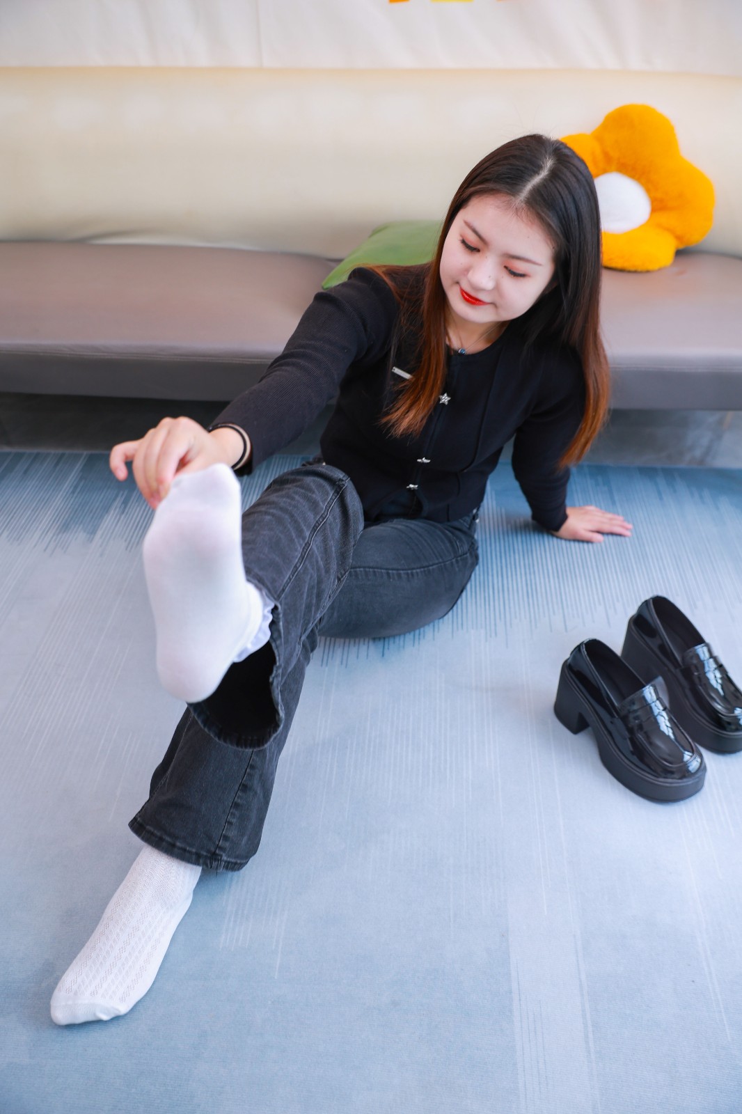❀服装:棉白袜 黑色牛仔裤 黑色小皮鞋