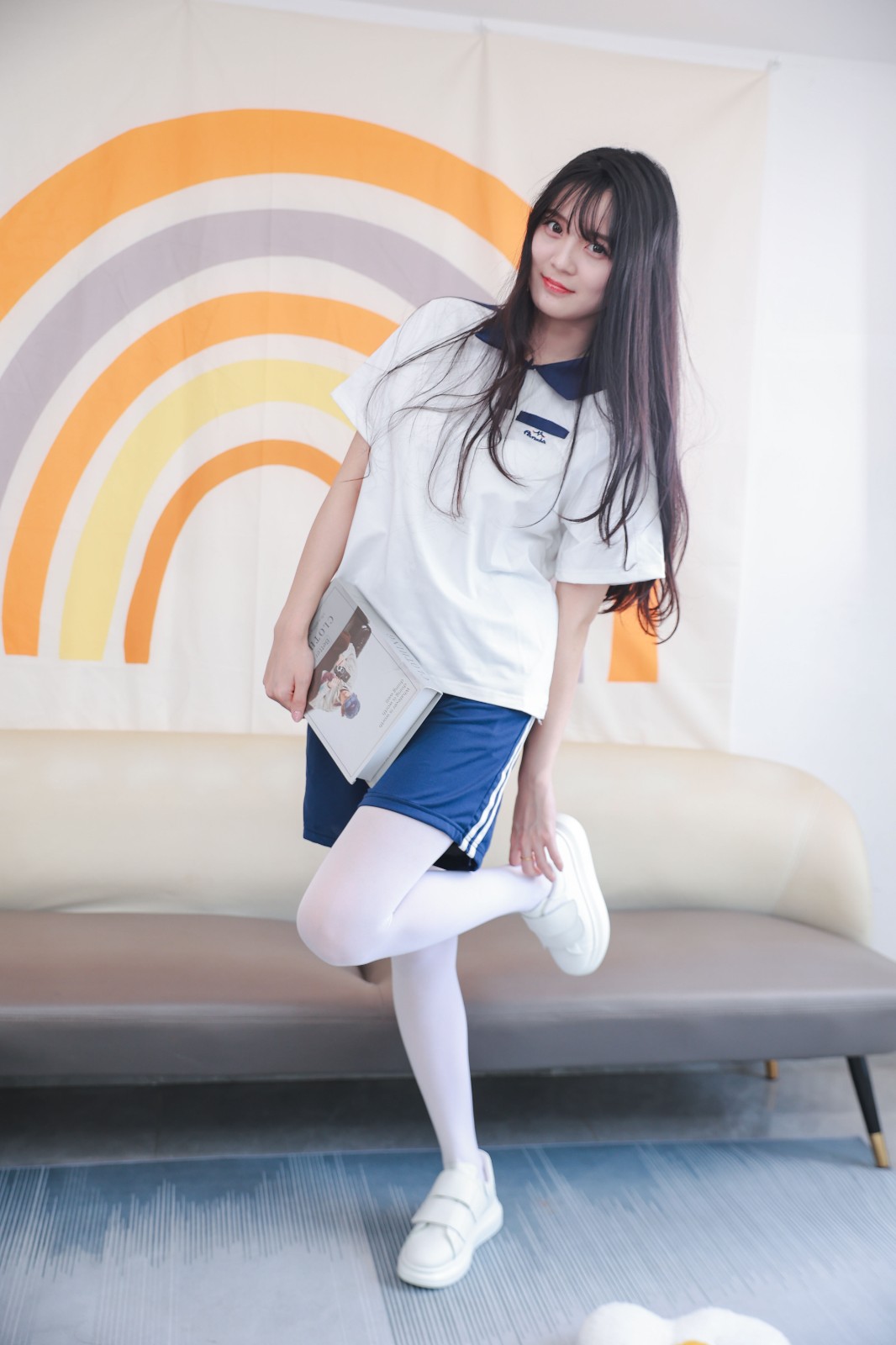 ❀服装:白蓝水手服 厚白丝 蓝色短裤 白色平地鞋